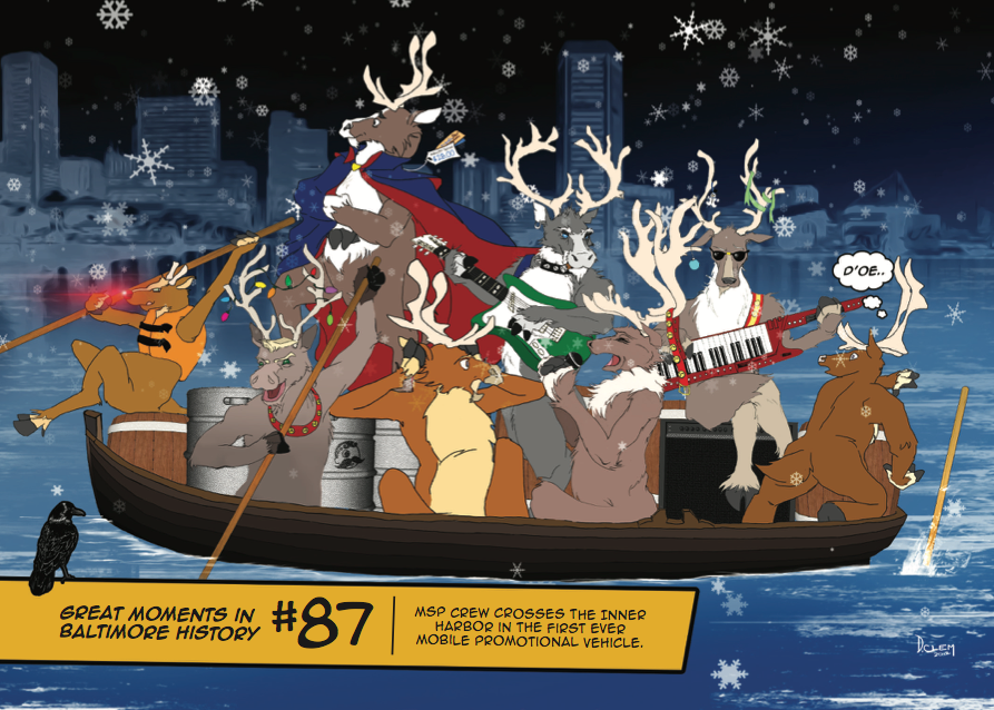 The executives of Media Star Promotions owned a series of decades-old drawings of edgy cartoon reindeer done by another artist. I updated them in my style and incorporated these new characters in parodies of historical events.